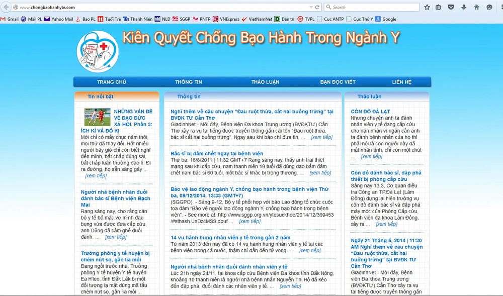 Giao diện website chống bạo hành y tế. Ảnh: TRẦN NGỌC