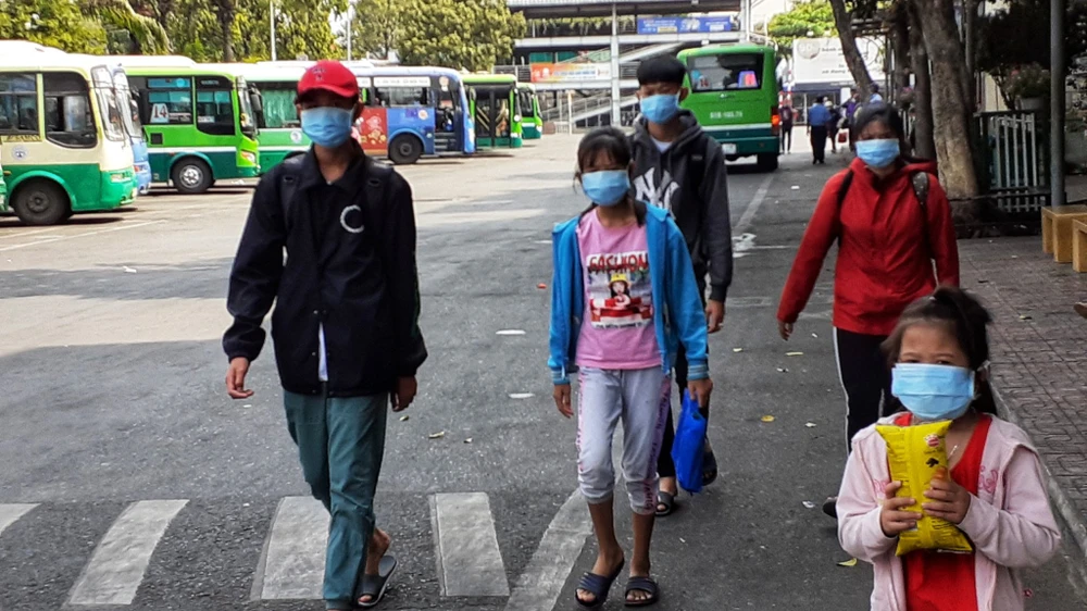 Tại Bến xe miền Đông (quận Bình Thạnh), lượng khách vắng hơn so với thời gian trước, ghế chờ lác đác người ngồi đợi. Nhiều người dân đều ý thức được việc việc đeo khẩu trang để bảo vệ chính mình và những người xung quanh trước tình hình dịch bệnh COVID -19 ngày càng diễn biến phức tạp. Trẻ em cũng được ba mẹ cho đeo khẩu trang cẩn thận.
