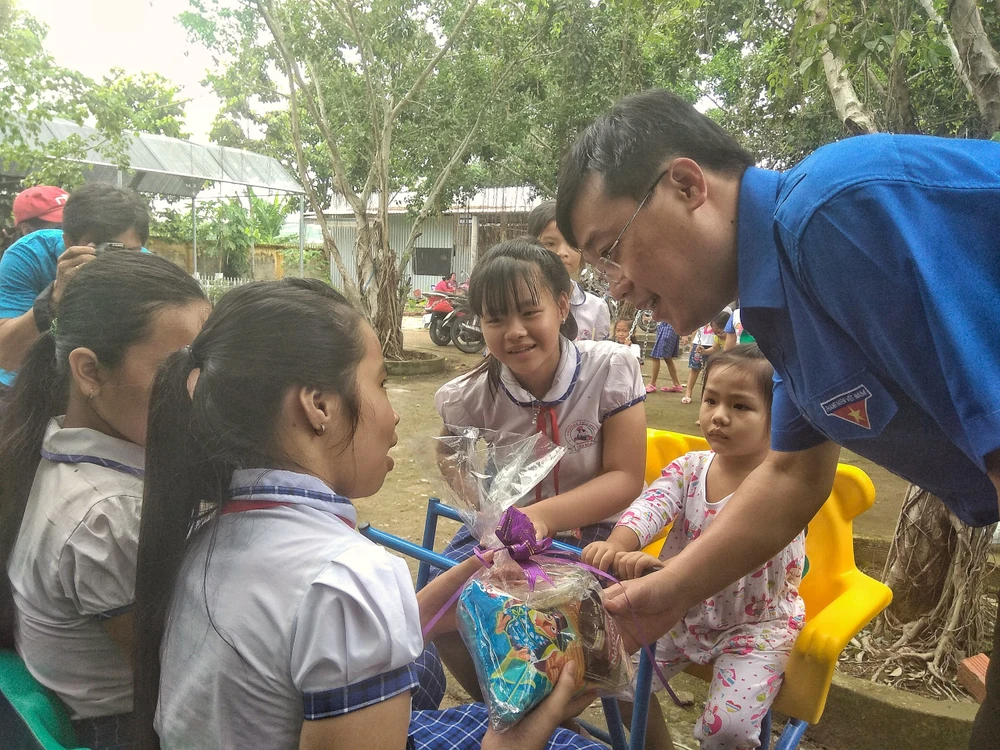 Sau buổi lễ ra quân, ông Lê Quốc Phong, Bí thư thứ nhất Trung ương Đoàn TNCS Hồ Chí Minh, ghé thăm và trao quà cho các em học sinh Trường Tiểu học Tân Đông, huyện Tân Thạnh, tỉnh Long An.