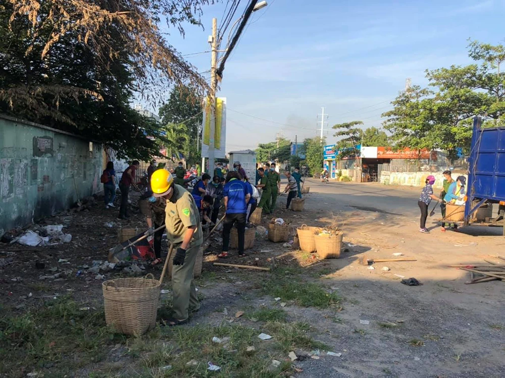 Đợt này, UBND phường tập trung dọn dẹp nhiều tuyến đường trên địa bàn phường. Trong đó, trọng tâm là tuyến đường song hành với đại lộ Phạm Văn Đồng.