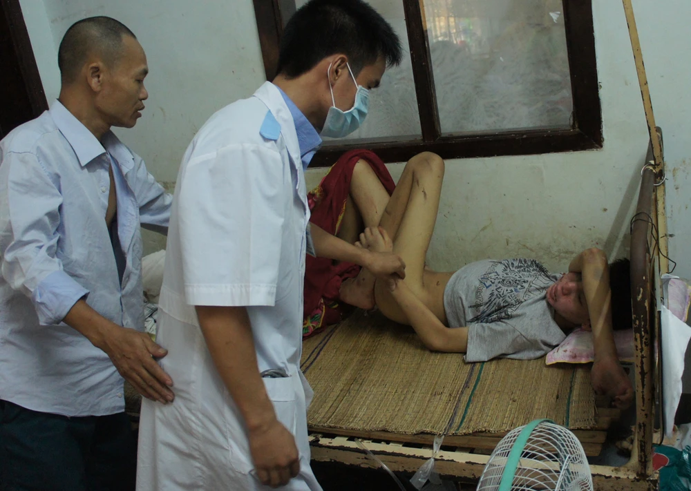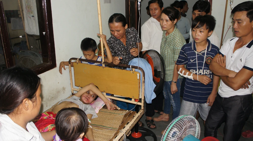 Những ngày qua, rất đông người dân đến giường bệnh thăm hỏi, động viên em Nguyễn Anh Tú và bố, mẹ của em. Ảnh: Đ.LAM