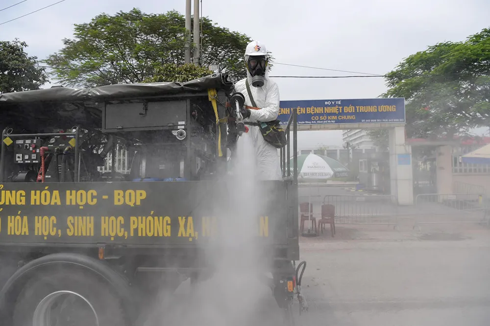 Binh chủng hoá học, Bộ Quốc phòng tiến hành phun khử khuẩn tại BV Nhiệt đới Trung ương trưa ngày 6-5