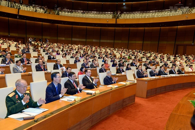 Các đại biểu Quốc hội tại phiên khai mạc kỳ họp thứ 11, Quốc hội khóa XIII diễn ra sáng 21-3.