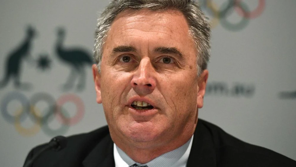 Phó Chủ tịch Ủy ban Olympic Úc, Ian Chesterman đã phải tổ chức họp báo nói lại cho rõ xuất xứ chất liệu vải của ASICS. Ảnh: Getty