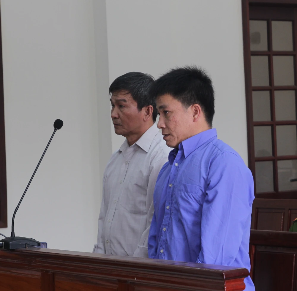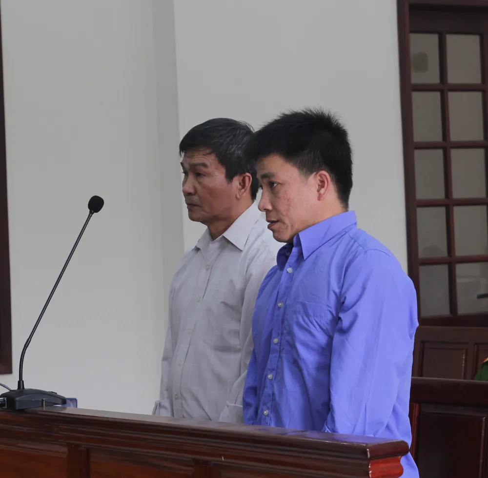 Bị cáo Thượng (áo trắng) và bị cáo Giang tại tòa. Ảnh: YC