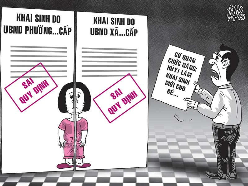 Để giải quyết rắc rối một trẻ có hai giấy khai sinh, Sở Tư pháp đã xin ý kiến của Cục Hộ tịch, Quốc tịch, Chứng thực và đề xuất hủy bỏ, thu hồi hai giấy khai sinh, trích lục đăng ký nhận cha con nói trên. Ngày 22-12-2017, Cục có công văn hướng dẫn, theo đó, thời điểm đăng ký khai sinh con, ông Đ. có cung cấp thông tin về người mẹ (họ, tên, chữ đệm, nơi cư trú) nhưng phường lại không xác minh (về người mẹ, việc chung sống của cha mẹ bé, việc liên lạc và ý kiến mẹ bé về việc cha nhận con) mà đã giải quyết theo yêu cầu của ông Đ. là không đúng quy định.