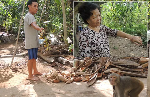 Ngày 11-5, ông Đặng Tấn Rộng, ngụ ấp Phước Hòa, xã Thành Triệu (Châu Thành, Bến Tre) xác nhận ngày 8-5 con khỉ đực trên 10 năm tuổi của gia đình ông đang nuôi đã bị đứt dây xích sắt và đi lang thang quậy phá khiến những người hàng xóm lo sốt vó.