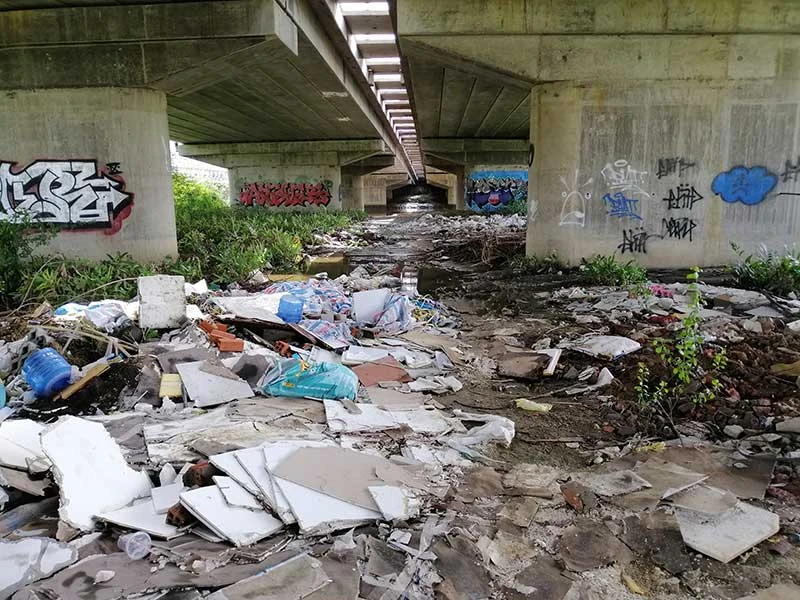 Rác thải tràn lan dưới gầm cầu cao tốc TP.HCM - Long Thành - Dầu Giây. Ảnh: THU TRINH