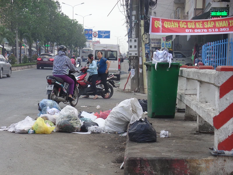 Bên cạnh đó có thùng rác đặt ở đường bộ hành cũng là chướng ngại vật. Hình ảnh chẳng đẹp chút nào!