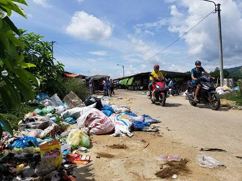 Tương tự, tại huyện Tiên Phước, hàng chục điểm tập kết rác thải tự phát xuất hiện hai bên đường. Theo ông Phan Minh Huynh (xã Tiên Thọ), khu vực trước nhà ông vô tình trở thành khu tập kết rác bất đắc dĩ vì hai tuần qua xe rác không đến thu gom.