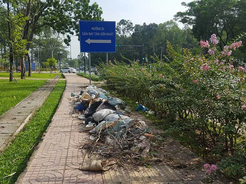 Theo ghi nhận của PV, dọc theo tuyến đường Hoàng Hà hướng từ sân bay Tân Sơn Nhất về đường Phạm Văn Đồng rải rác ven đường là nhiều bãi rác lớn nhỏ. Rác đổ thành đống ở lòng đường, vỉa hè, đa số là rác sinh hoạt, từ quần áo cũ, xà bần, cành cây cho đến ván ép công trình. Trạm xe buýt cũng bị biến thành nơi chứa rác. Thậm chí người ta còn chất rác ngay dưới chân bảng cấm đổ rác, nhổ cả bảng cấm lên. Chính quyền đã lắp bảng cảnh báo có camera quan sát để ghi hình xử phạt nhưng cũng không giải quyết được vấn đề.