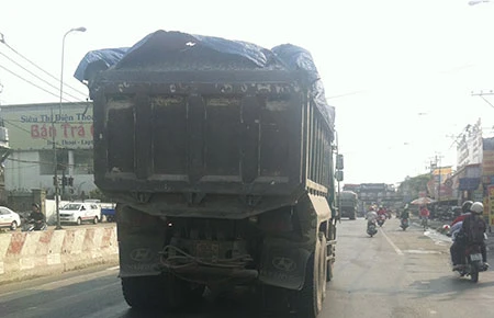 Khổ nỗi, thỉnh thoảng xe lại “nhả” đá dăm trên thùng xe xuống đường vì xe chở đá vun thùng, lại che chắn lấy lệ, dọa người đi đường (ảnh). CSGT sao không “hỏi thăm” mấy bác tài này cho dân nhờ?