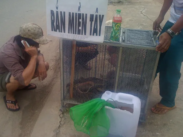Người thanh niên tên S.K.L, quê tỉnh Trà Vinh cho biết số lượng rắn này đều được bắt trong môi trường tự nhiên ở các cánh rừng tràm, đồng ruộng ở miệt Cà Mau, Đồng Tháp...Tùy theo từng chủng loại rắn độc, hay cực độc mà người bán báo giá dao động từ 500 - 800.000 đồng/ ký. Khi chúng tôi hỏi thăm có bán rắn hổ mang không, anh S.K.L tiết lộ: rắn hổ mang là loại rắn quý, cấm bán triệt để nhưng nếu có nhu cầu mua anh ta sẽ cho số điện thoại di động cá nhân và việc “giao dịch” mua bán “rắn độc” sẽ diễn ra tại nhà người mua cho an toàn. Để “ngụy trang” đối phó với lực lượng chức năng , hai thanh niên này cũng bày bán cái loại rắn “hiền” như: rắn bông súng, rắn nước...