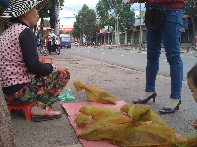 Trong khi đó, trên tuyến đường đường Nguyễn Ái Quốc (đoạn trước cổng nhà thờ giáo xứ Đại Lộ, khu phố 7, phường Tân Biên), cũng có một phụ nữ bày ra sát lề đường mấy chiếc túi lưới đựng toàn rắn lục và rắn ri cóc. Người phụ nữ luôn miệng mời gọi mọi người mua rắn lục về ngâm rượu uống trị bệnh tê thấp nhức mỏi, mua rắn ri cóc về nấu cháo hay hầm canh đu đủ trị bệnh còi xương(?!). Lời rao hấp dẫn thu hút khá nhiều người đi đường dừng lại chỉ trỏ, hỏi mua.