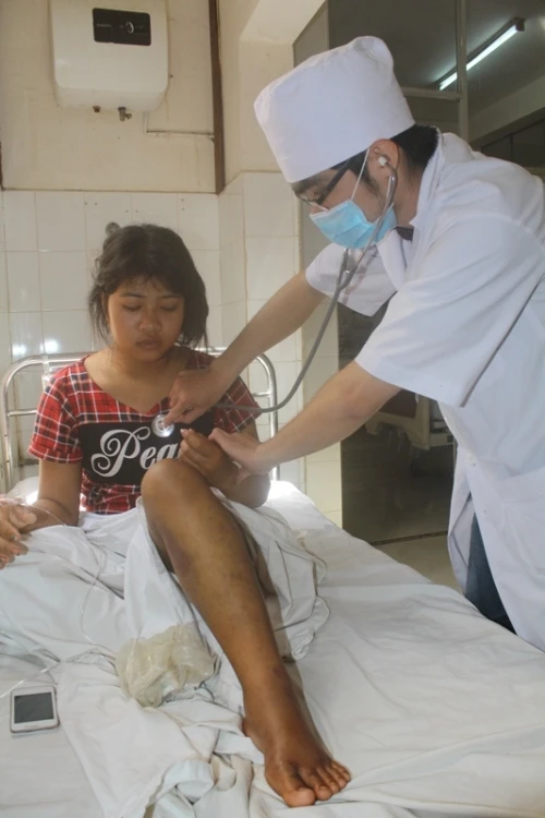 Biết bị rắn lục đuôi đỏ cắn, người thân vội vàng đưa H’Ly Sa lên bệnh viện tuyến huyện cấp cứu. Được hai ngày, chân H’Ly Sa ngày càng sưng to nên được chuyển lên tuyến trên điều trị.
