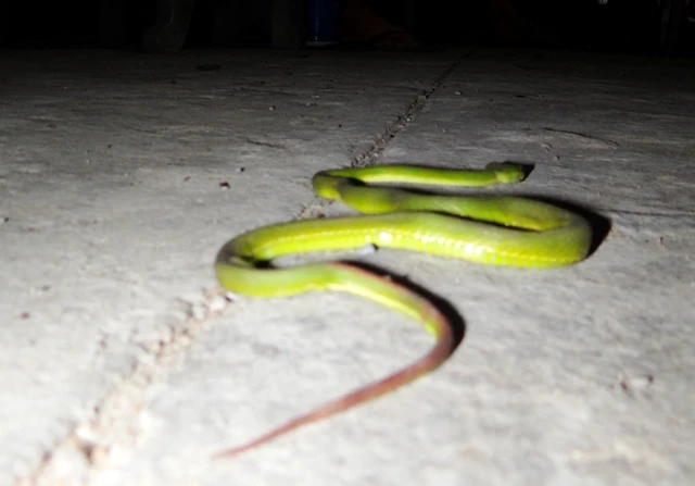 Mới đây, nhiều người đi trên đường TL19 (đoạn thuộc KP 3C, phường Thạnh Lộc, quận 12, TP.HCM) ngạc nhiên khi thấy xác một con rắn lục nằm giữa đường có cái đuôi màu đỏ. Người dân địa phương cho biết, đó là rắn lục đuôi đỏ, bị đập chết khi đang bò qua đường. “Không hiểu sao thời gian gần đây rắn lục đuôi đỏ xuất hiện ở khu vực này nhiều quá, trước đây không thấy loài rắn này”, một người dân sống gần chỗ con rắn bị đập chết, thắc mắc.