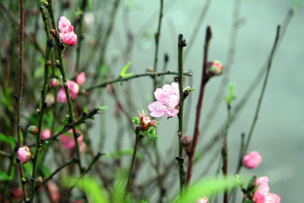 Những nụ hoa đào "bung lụa" tươi tắn vào đúng dịp tết dương lịch.