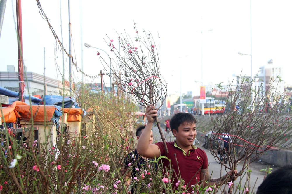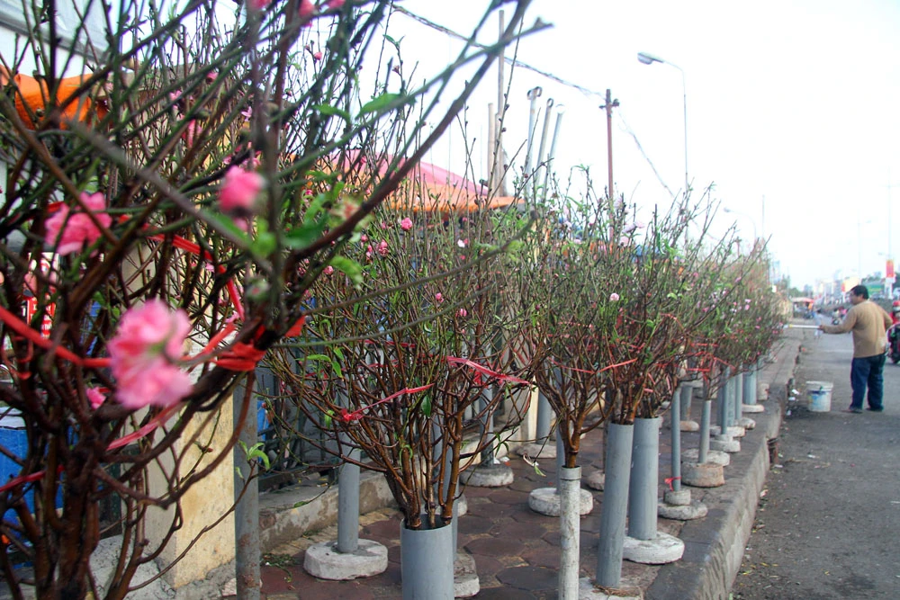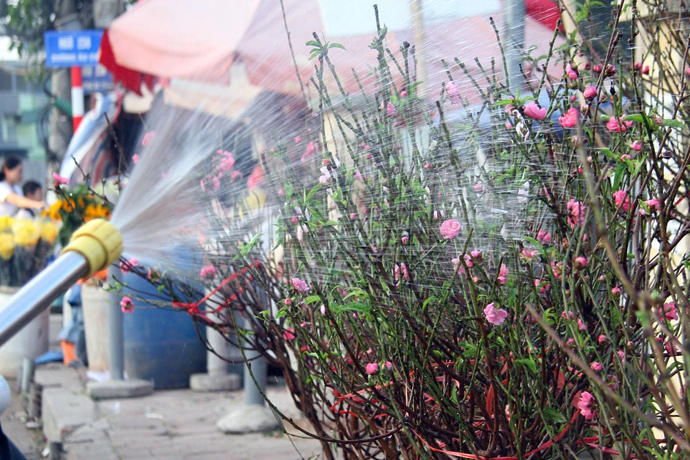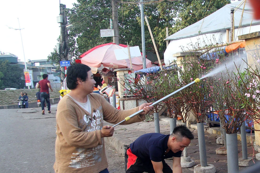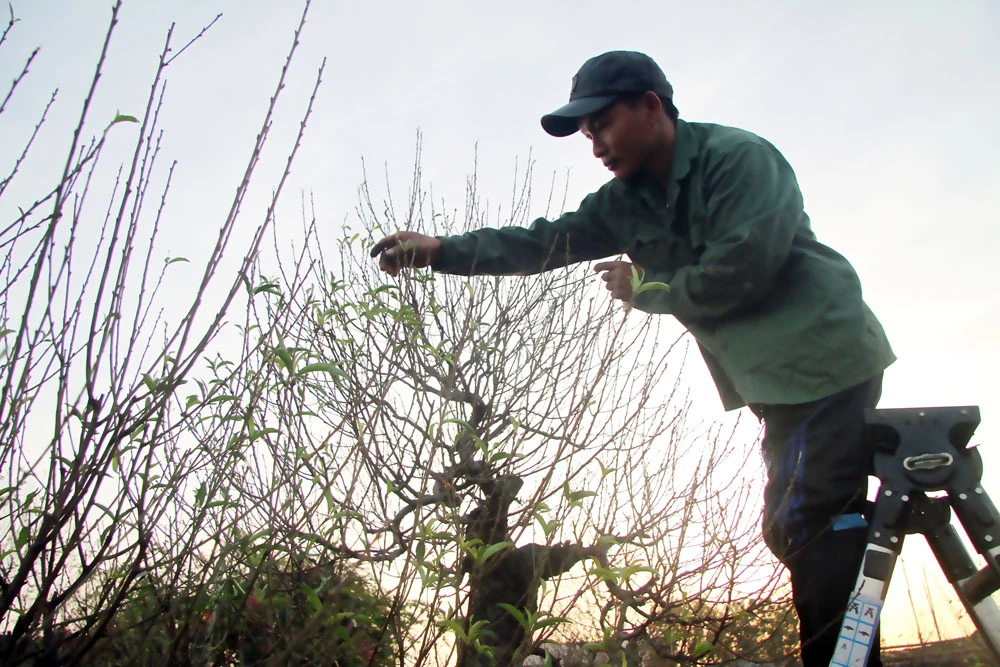Để đào nở đúng dịp, những người trồng đào phải tiến hành tuốt lá, tỉa cành trước đó từ một tháng, đến hơn một tháng...