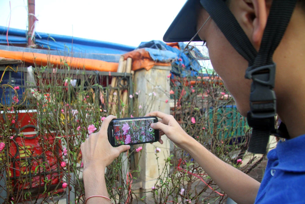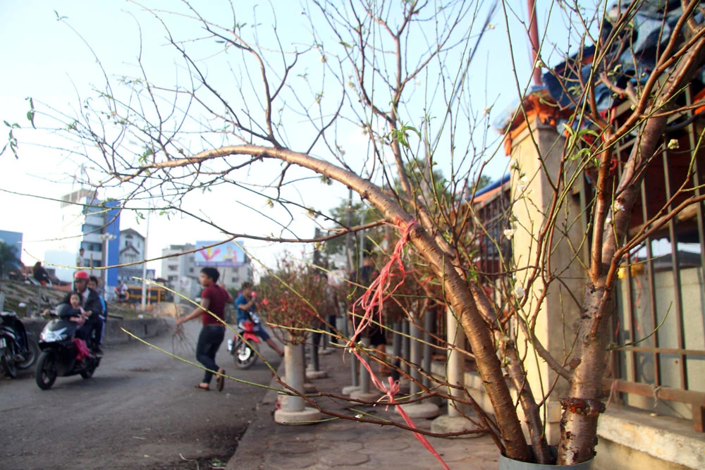 Ghi nhận tại đây vào chiều nay (12-12), hàng bày bán đào đã thu hút khách hàng.