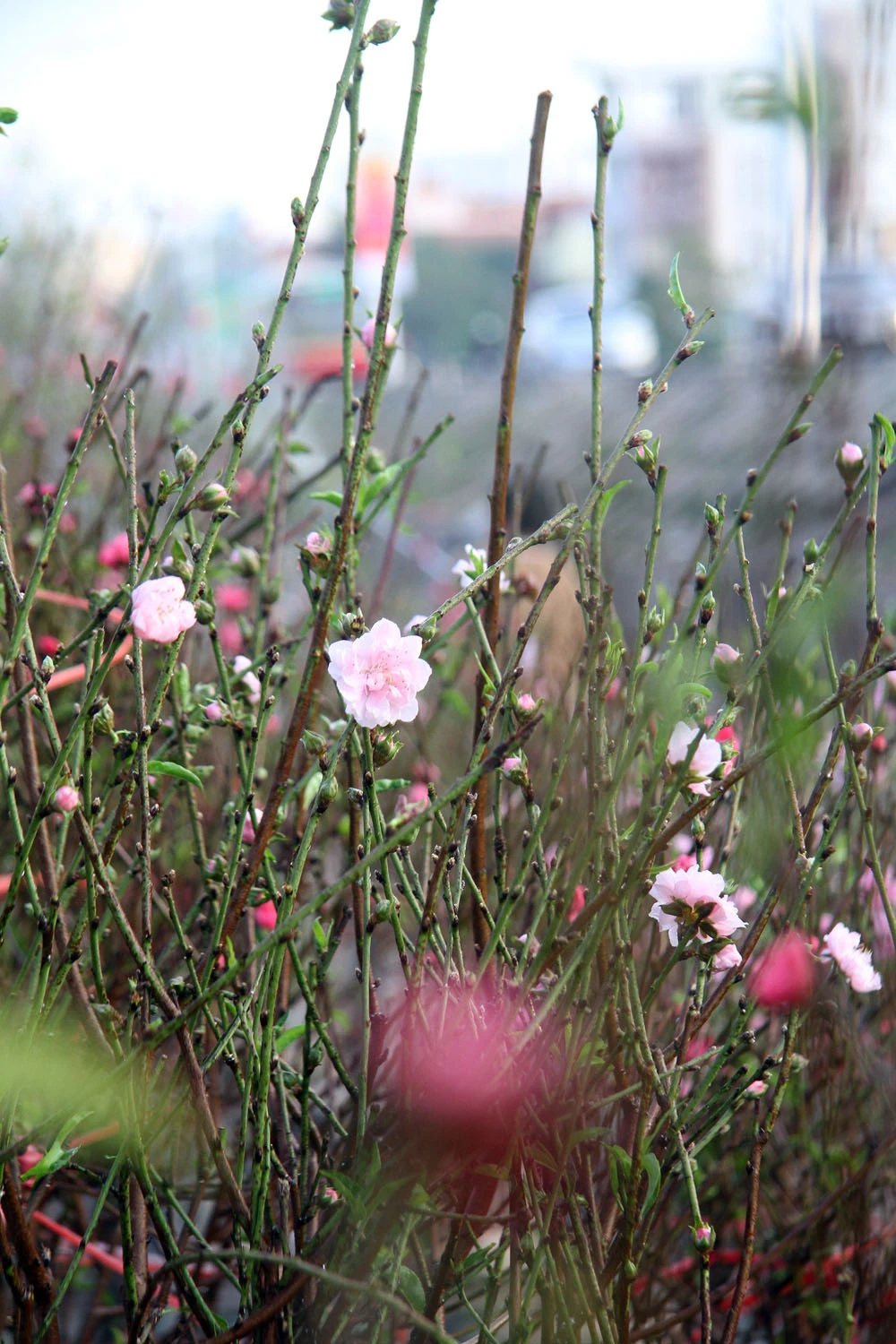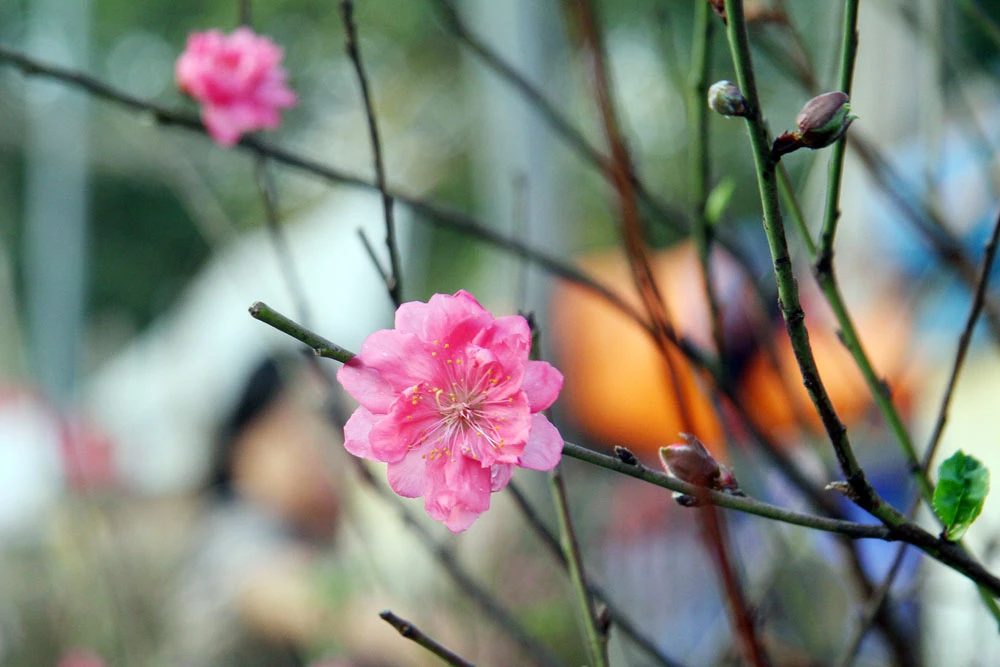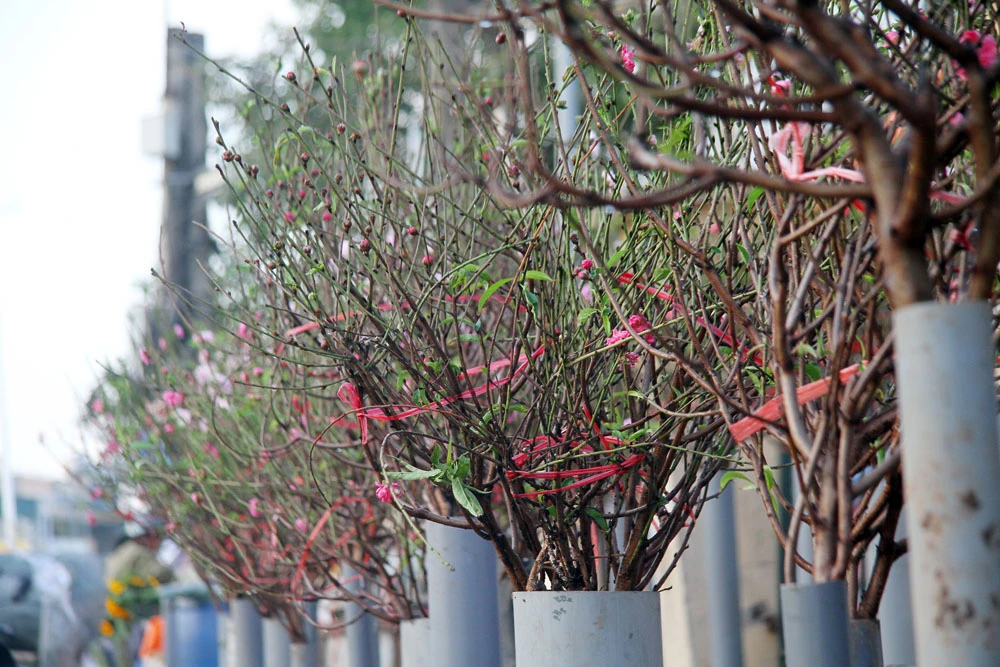 Những cành đào được chủ chăm sóc kỹ càng.
