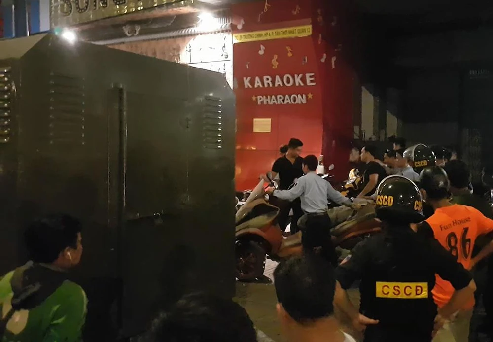 Tối 10-4, sau khi khám xét nhà riêng của gia đình Trần Ngọc Phúc (tức Phúc XO, 36 tuổi, ngụ TP.HCM) Phòng cảnh sát Hình sự (PC02) công an TP.HCM phối hợp với nhiều đơn vị nghiệp vụ liên quan phong tỏa quán karaoke XO trên đường Trường Chinh (quận 12) để khám xét.