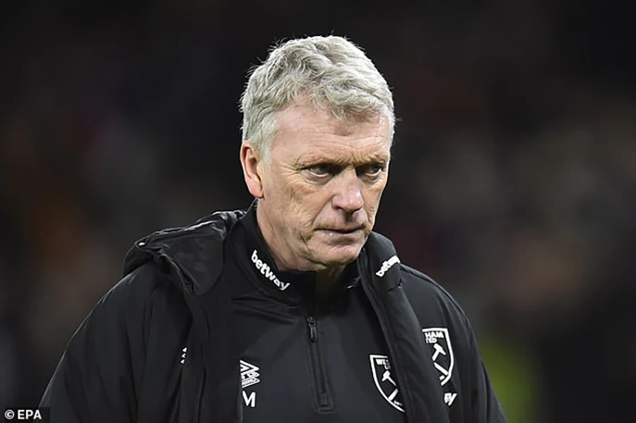 HLV David Moyes rất buồn vì West Ham thua bàn phút cuối. ẢNH: EPA