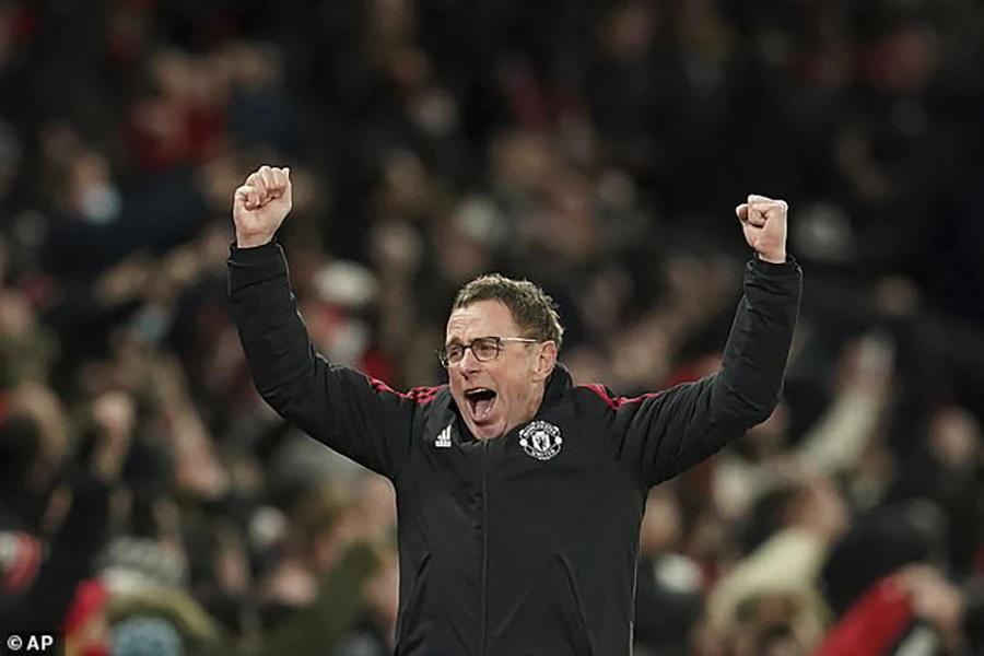 Rangnick vui mừng sau khi Rashford ghi bàn cho MU. ẢNH: AP
