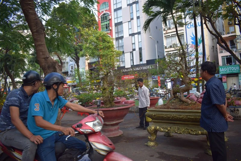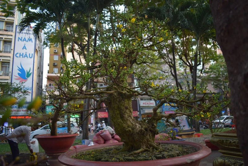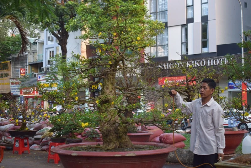 Tại TP.HCM, người dân khi đến tham quan chợ hoa xuân tại Công viên 23-9 (quận 1) đều không khỏi trầm trồ khi gặp gốc mai của anh Phan Văn Lớn (tỉnh Đồng Tháp).