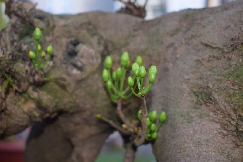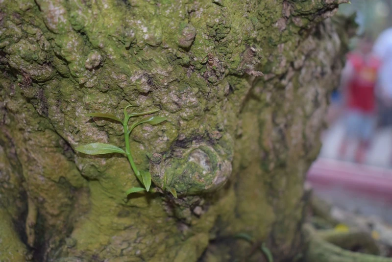 Những lộc non mọc lên từ thân cây sần sùi tạo nên sức sống mãnh liệt của loài cây này.