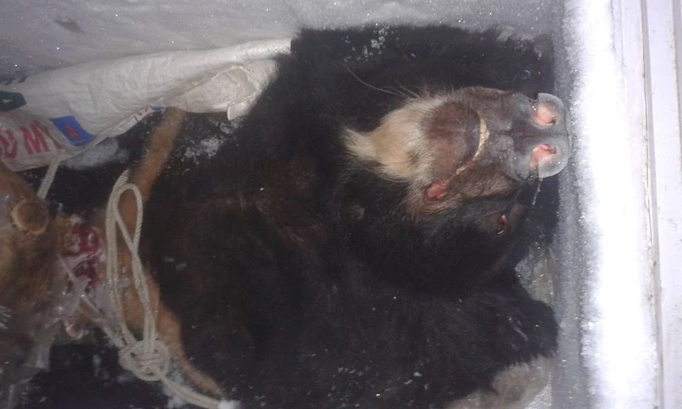 Chinh đăng tải trên Facebook ảnh một con gấu đã bị giết, bỏ vào tủ đông lạnh.
