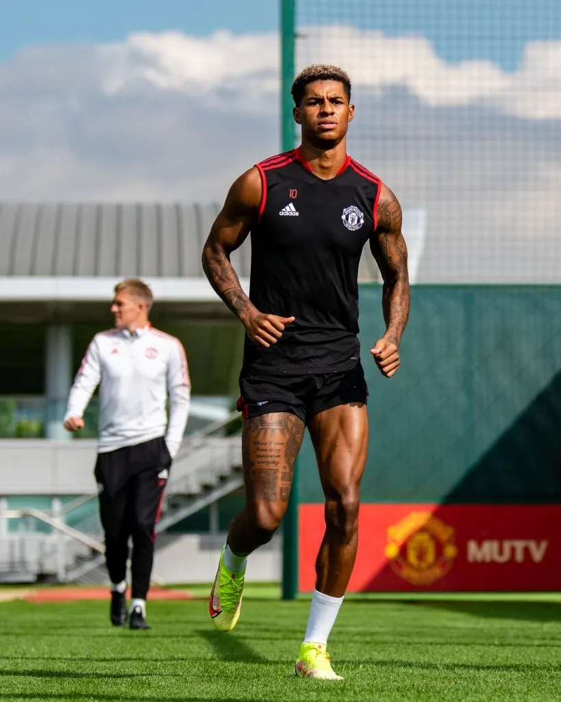 Rashford tập luyện trong màu áo CLB Manchster. ẢNH: GETTY