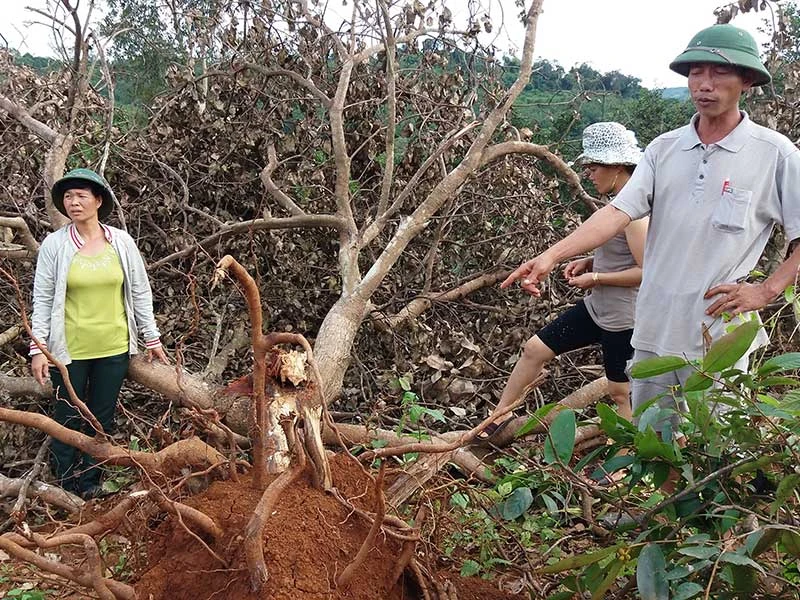 Hàng trăm gốc điều của người dân đã bị ủi bật gốc trong ngày 23-10. Ảnh: NGUYỄN ĐỨC