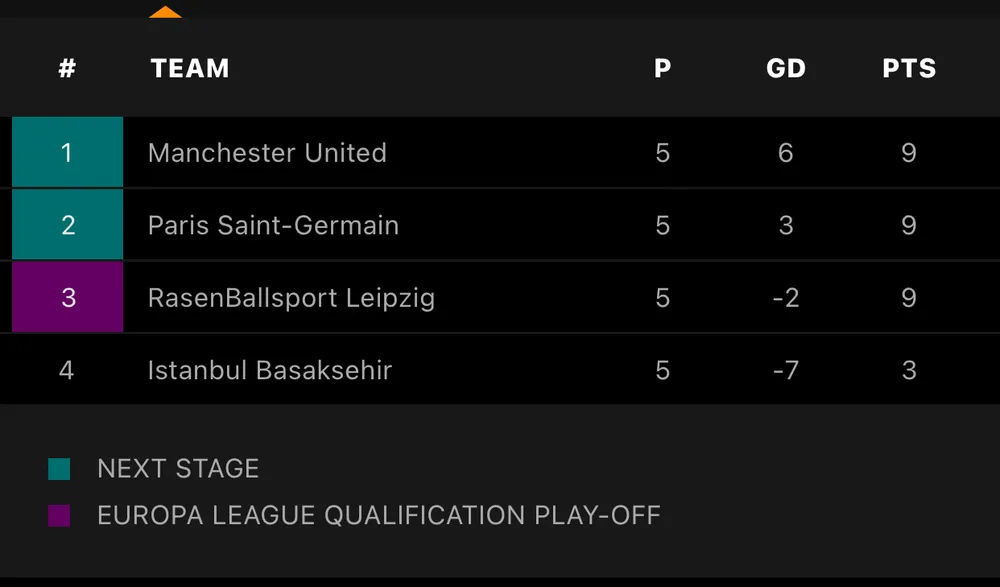 Vì thế, cặp đấu còn lại giữa Man. United và Leipzig sẽ là màn đấu sinh tử để giành chiếc vé còn lại vào chơi vòng 16 đội. Man. United chỉ cần một trận hoà là sẽ đi tiếp vào vòng trong. Bởi MU đang hơn Leipzig hiệu số bàn thắng, sau 5 vòng đấu hiệu số của “quỷ đỏ” đang là +6 còn đại diện của nước Đức thì -2.