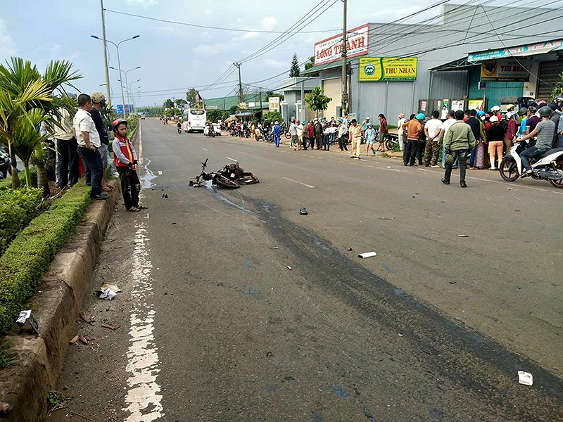 Hiện trường vụ tai nạn giao thông nghiêm trọng.