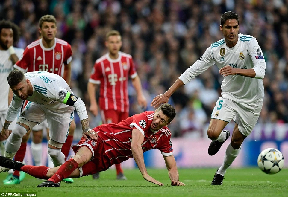 Trong hiệp 1, Bayern Munich còn có hai tình huống đòi phạt đền nhưng trọng tài người Thổ Nhĩ Kỳ, Cuneyt Cakir không cắt còi. Đầu tiên là tình huống té ngã nhạy cảm trong vòng cấm của Lewandowski sau pha tranh chấp với Ramos.