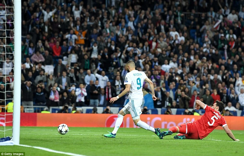 Benzema nâng tỉ số lên 2-1 cho Real.