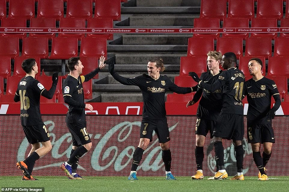 Trái ngược với Real Madrid, kình địch Barcelona lại có được chiến thắng đậm đà với tỷ số 4-0 trong chuyến hành quân đến chơi trên sân của Granada. Chiến thắng này của Barca mang đậm dấu ấn của bộ đôi tiền đạo Messi-Griezmann.