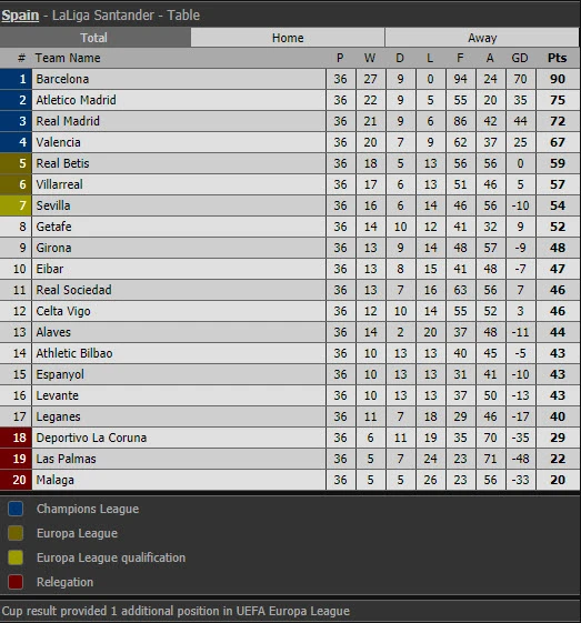 Thua trận 2-3 trong trận đấu mà thầy trò Zidane thi đấu hời hợt, thiếu quyết tâm và có vẻ buông, Real Madrid vẫn giữ vị trí thứ ba với 72 điểm nhưng họ đang thua đội xếp thứ hai là đại kình địch cùng thành phố Atletico Madrid 3 điểm khi mùa giải La Liga chỉ còn hai vòng nữa.