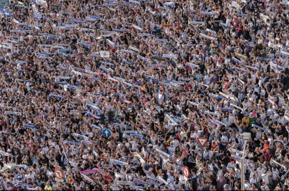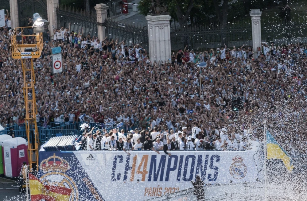 Biển người ăn mừng chức vô địch Champions League và La Liga cùng Real Madrid. ẢNH: GETTY |