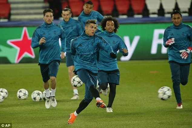 Real Madrid tập luyện kín bên trong sân Parc des Princes trước trận đấu với PSG rạng sáng mai (7-3)