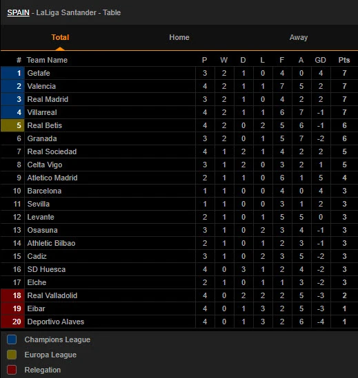 Thắng trận tối thiểu 1-0, Real Madrid có 7 điểm sau vòng 4 La Liga, thầy trò HLV Zidane mới thi đấu 3 trận. Ở trận đấu còn lại, Atletico Madrid đã bị SD Huesca cầm chân với tỉ số 0-0.