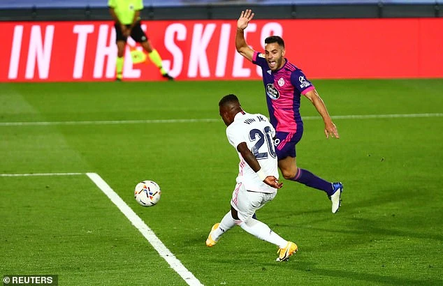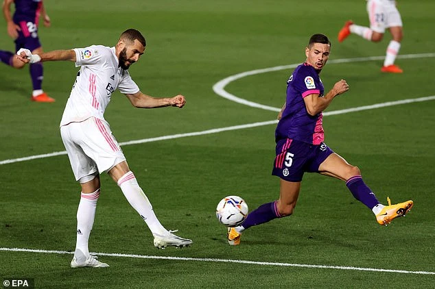 Phút 65, Benzema có bóng trong vòng cấm và kiến tạo cho siêu dự bị Vinicius Junior sút bóng cận thành vào lưới ghi bàn mở tỉ số 1-0 cho Real Marid. Các cầu thủ Valladolid giơ tay báo hiệu Vunicius đã rơi vào thế việt vị.
