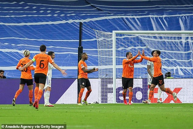 Shakhtar Donetsk có được bàn gỡ trong hiệp một khi tận dụng sơ hở noi hàng thủ Real. Ảnh: Getty Iamges.
