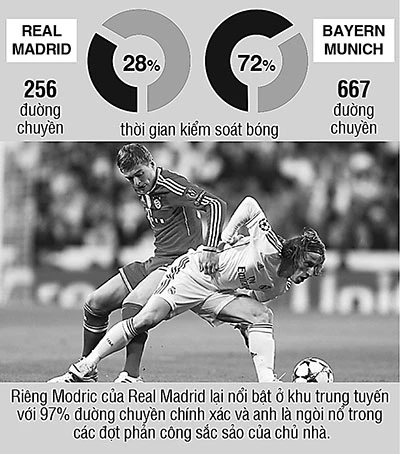 Một trận đấu mà ông Ancelotti chấp nhận ít cầm bóng và mất phần khống chế bóng nhưng luôn lấy bệ phóng từ sân nhà. Đấy cũng là nơi Ronaldo có bóng ở rất sâu như một hậu vệ cánh và phóng đường chuyền xuống biên phải cùng thời điểm Benzema đã chạy gần 80 m từ sân nhà, lao vào vòng cấm để ghi bàn.