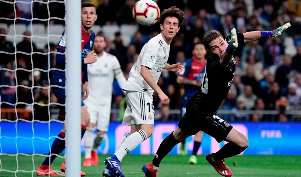 Thủ môn Luca Zidane nhận ngay bàn thua phút thứ 3 trong trận bắt chính, Real tiếp đội bóng bét bảng Huesca. Ảnh: AFP