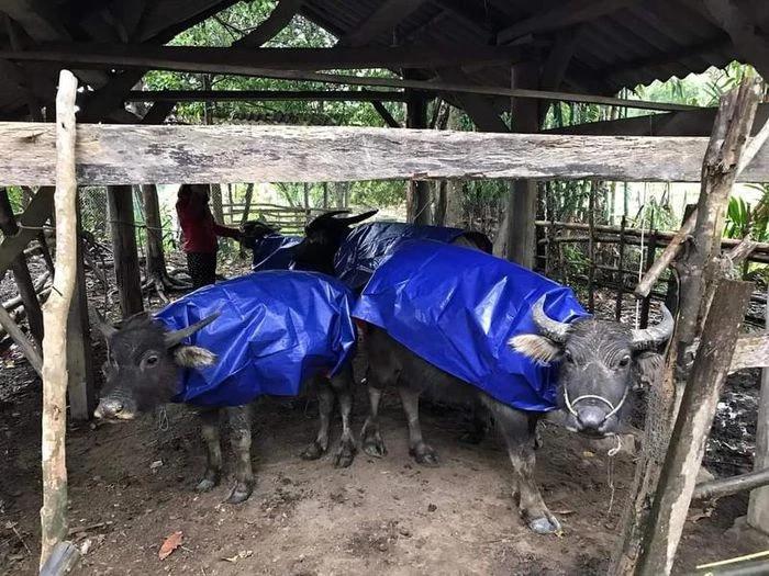 Bà con tại vùng cao chống rét cho trâu bò. Ảnh: Tổng cục Phòng chống thiên tai, Bộ NN&PTNT