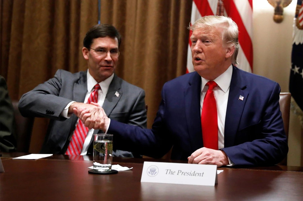 Tổng thống Mỹ Donald Trump (phải) và Bộ trưởng Quốc phòng Mark Esper (trái). Ảnh: AP