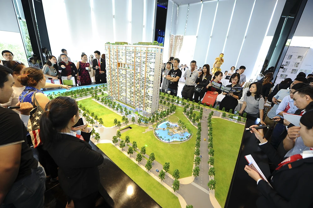 Khách hàng đến tham quan khu dự án căn hộ biệt lập ven sông River Panorama. Ảnh: NH