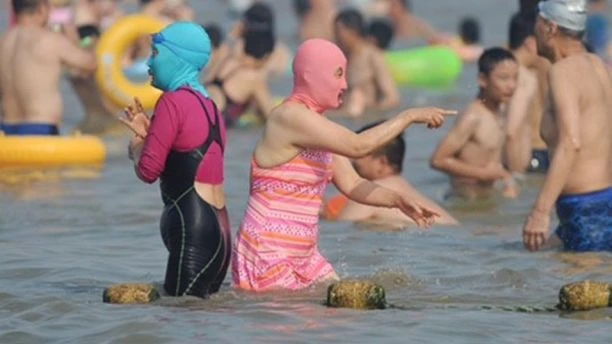 Tại các bãi biển Trung Quốc, mọi người sẽ không thấy lạ với mốt "quái dị" này của các chị em. Ảnh: foxnews