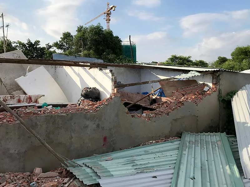 Dãy nhà trọ ở đường Trục, phường 13, quận Bình Thạnh bị đập phá. Ảnh: L.THOA